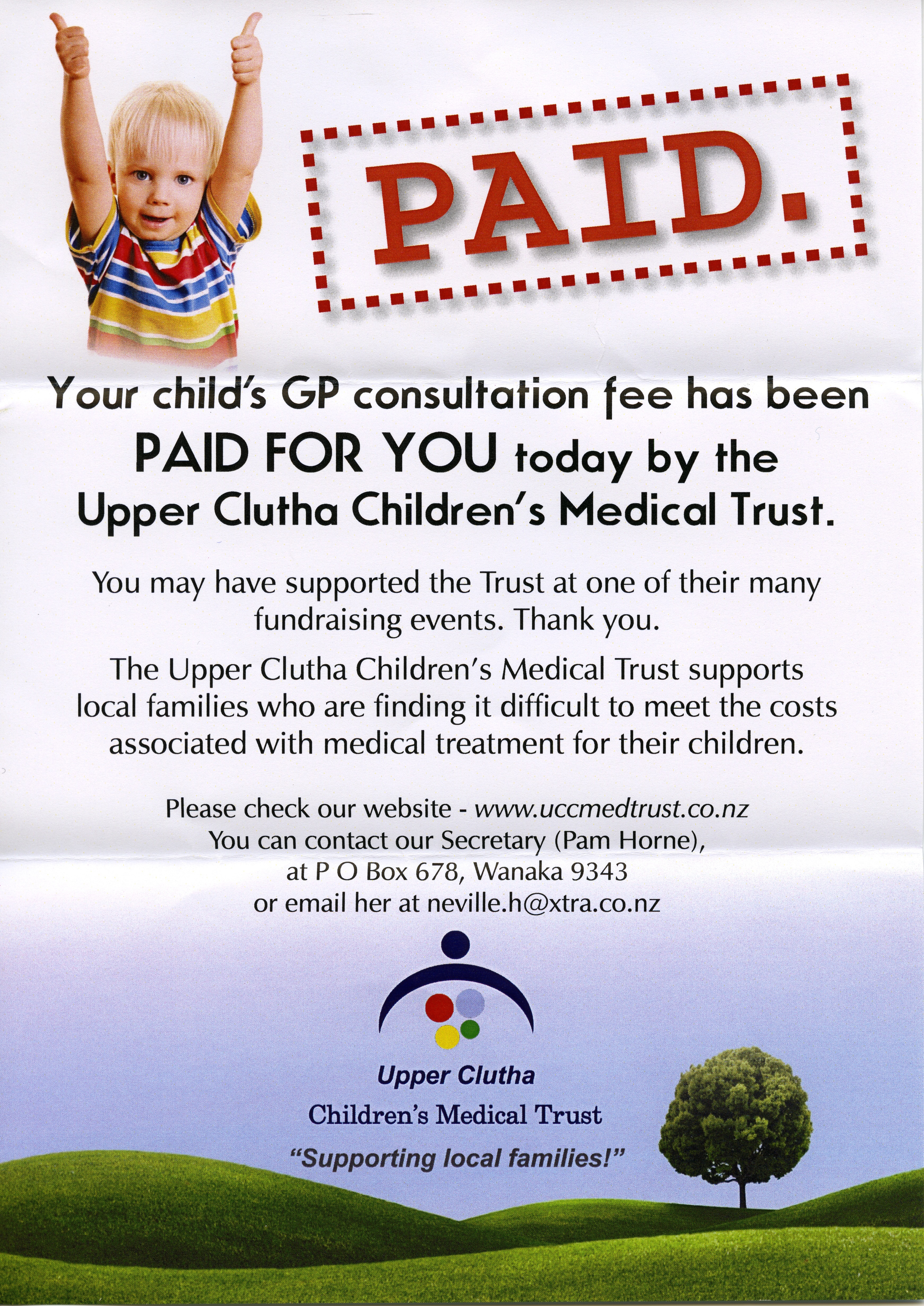 Messenger Story on the free Doctor's visits paid for by the Trust from November 2014 until the Government subsidy begins in July 2015