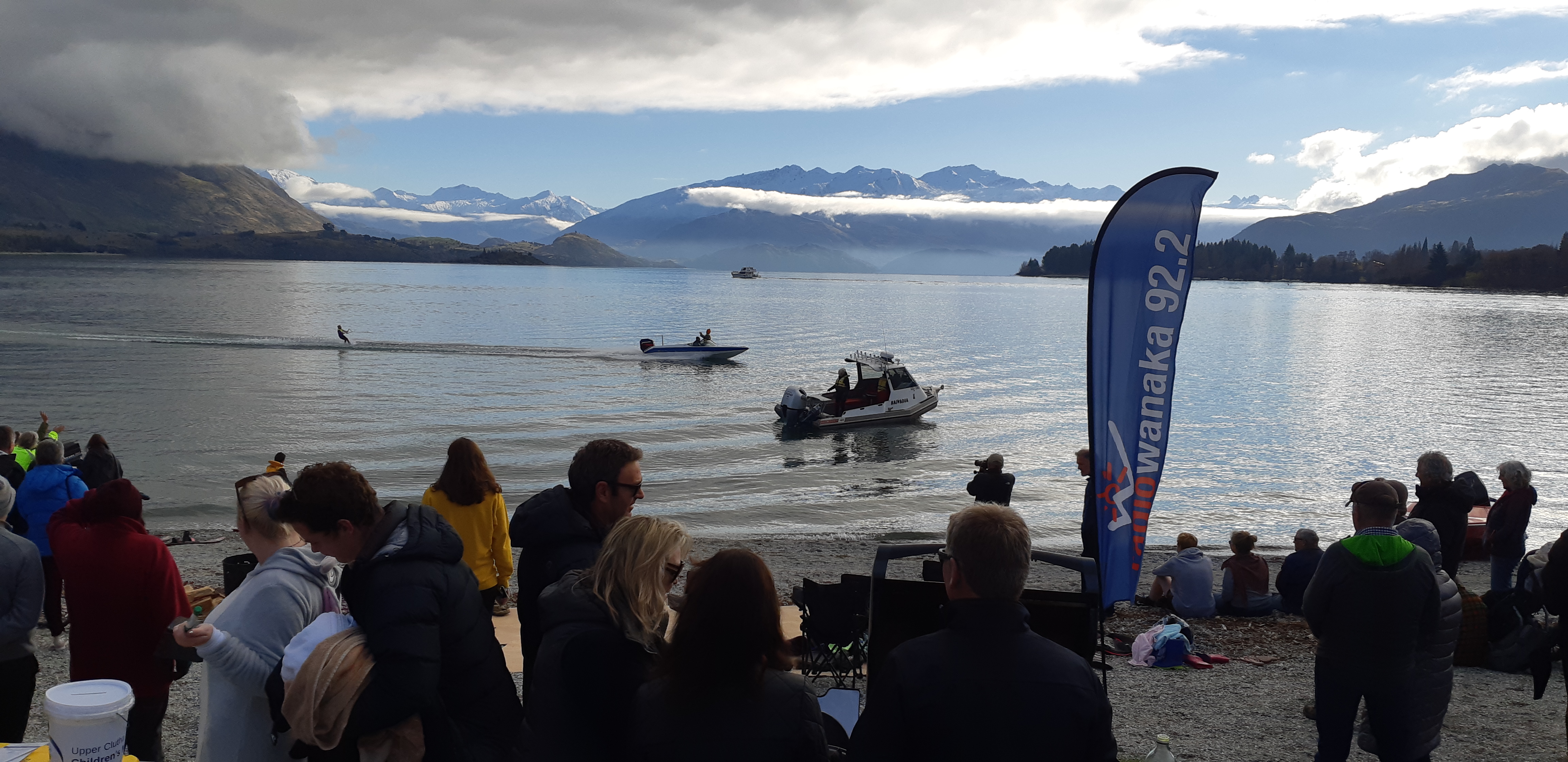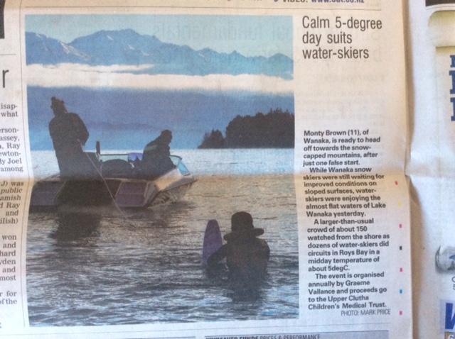 On Sunday 23rd June, the Wanaka Waterski Club held their annual “Shortest Day Waterski Event” with members of the Upper Clutha Children’s Medical Trust collecting the funds donated. It was a beautiful, calm and relatively warm winter’s day, and a large crowd of onlookers watched the many skiers take to the water.